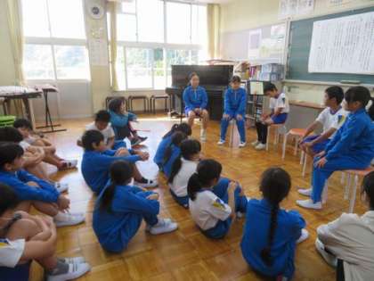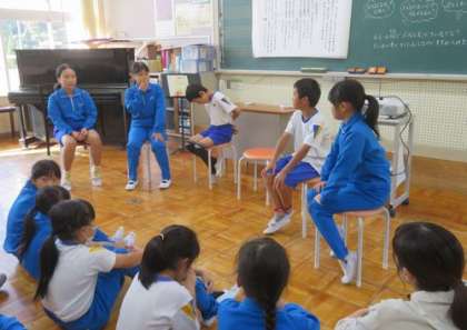 11/6 全校対話集会 公開日 2024/11/06 更新日 2024/11/06 学校の特色ある活動 今日のさわやかタイムは「全校対話集会」を行いました。各学年の代表者1名ずつが前に出て、テーマについての対話を進めました。《大縄跳び》に意見がまとまりました。