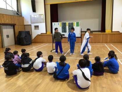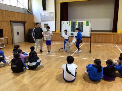 来週から始まる『冬季体力UP月間』の紹介をしました。 縄跳び検定と体力UPトレーニングの紹介でした。