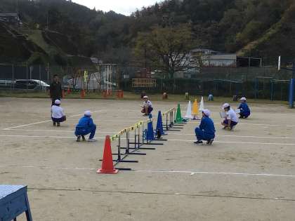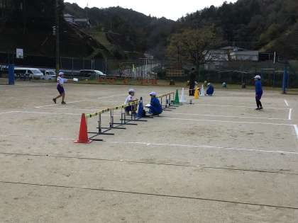 体育科の学習 テニピンをしています。 テニスとピンポンを合わせた競技です。