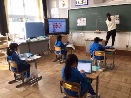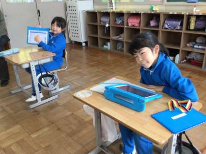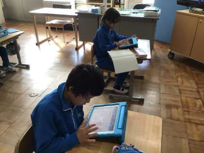 算数科の学習 タブレットを使って、かけ算の学習をしています。