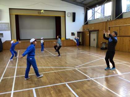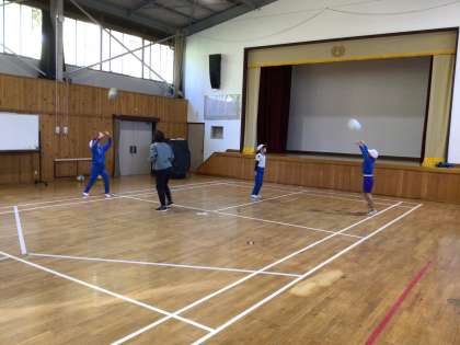 体育科の学習 バレーボールのトスを練習しています。 ラリーが続くように頑張っています。