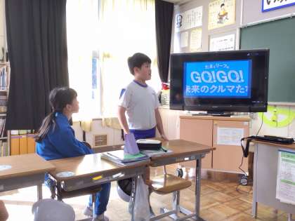 社会科の学習 電気自動車に期待するこれからの社会について学んでいます。