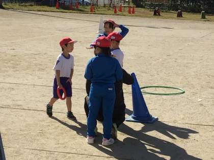 体育科の学習 リレーで走る練習をしました。 走る順番も作戦のうちです。