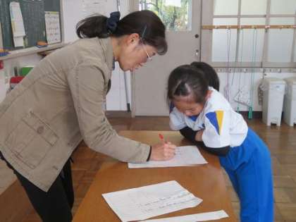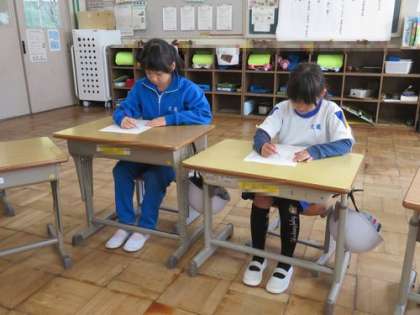 書写の時間です。 書き初めの練習をしています。どの子も真剣な表情です。