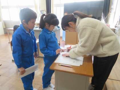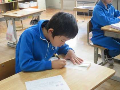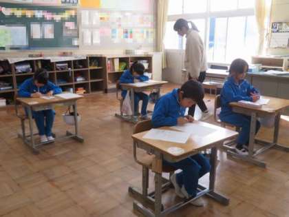 1時間目は書写です。 書き初めの練習をしています。どの子も一生懸命取り組んでいます。