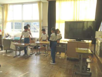 12月3日 3・4年 公開日 2024/12/03 更新日 2024/12/03 各学年から 「3・4年 単独不審者対応訓練」と題して、不審者が学校に侵入した場合の行動について考えました。教卓等でバリケードを作ったりランドセルから音の鳴るものを外したりして、不審者から身を隠し、少しでも身を守れる方法を考えました。