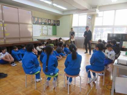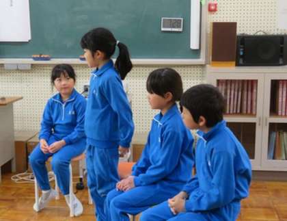 本日のさわやかタイムは「全校対話集会」です。1・2年生が前にでて『すきなあそび』について対話を繰り広げました。最後に、運動会の赤白チームに分かれ、上級生からよかったところをたくさん教えてもらいました。みんながんばったね。
