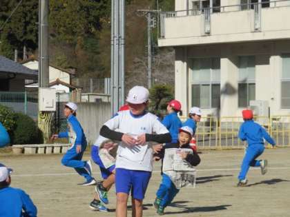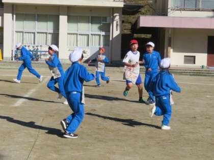 12月19日 いきいきタイム 公開日 2024/12/19 更新日 2024/12/19 学校の特色ある活動 体力UP月間の取組も明日が最終日です。今日は「すこやかトレーニング」の日。青空の下、お腹の新聞紙や半紙を落とさないように気を付けながら、鬼から逃げ回りました。