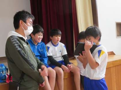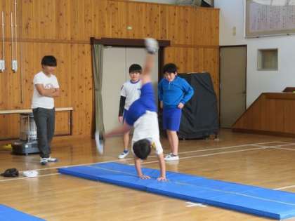 12月19日 5・6年 公開日 2024/12/19 更新日 2024/12/19 各学年から 3時間目は体育科の授業です。「マット運動」を学習しています。グループに分かれて、技を練習したり、タブレットで撮影した動画を見てみんなで分析したりしています。