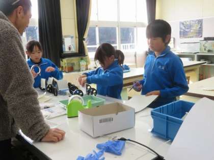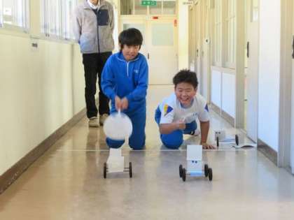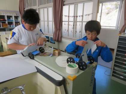 12月19日 3・4年 公開日 2024/12/19 更新日 2024/12/19 各学年から 3時間目は理科です。「風の力のはたらき」を学習しています。風で動く車を作り、より遠くまで走るように、風を受ける部分の形や大きさなどをいろいろと試しました。