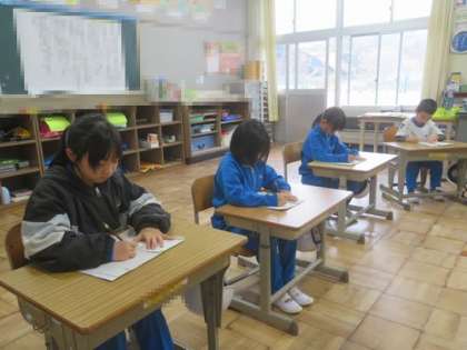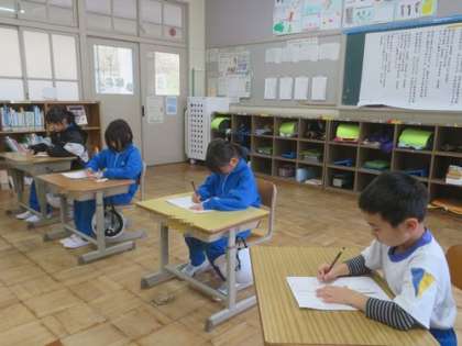 書き初め大会の様子です。どの子も真剣に取り組むことができました。