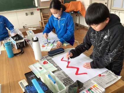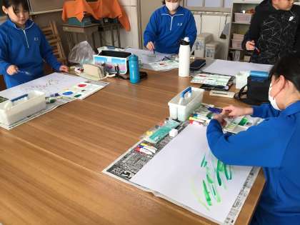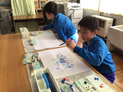 各々が聴いた音をイメージして画用紙に、絵の具を使って表現します。