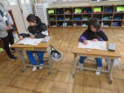 4時間目は国語の授業です。テキストに取り組んでいます。