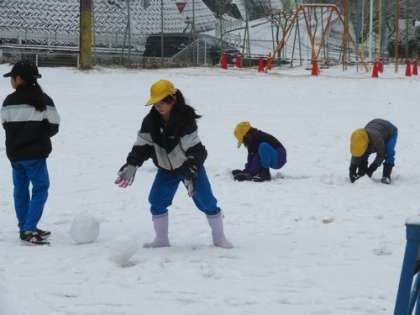 1月10日 1・2・3・4年 公開日 2025/01/10 更新日 2025/01/10 各学年から いきいきタイムの様子です。真っ白な雪に覆われた運動場で、1〜4年生の子どもたちが雪遊びをしています。雪を集めて雪玉を作ったり、重ねて雪だるまにしたり、雪合戦をしたり。思い思いに雪と触れ合いました。