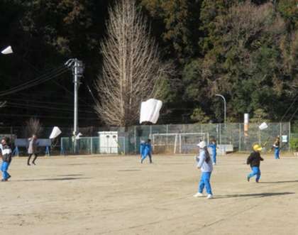 2時間目は生活科の授業です。今日のテーマは「たこであそぼう」。自分で作ったたこを運動場であげて楽しみました。