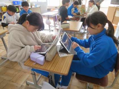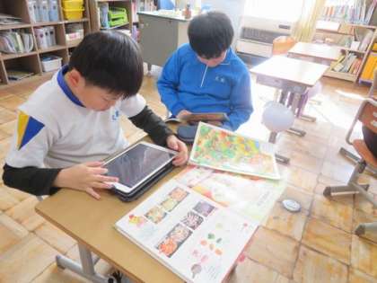 1月23日 5・6年 公開日 2025/01/23 更新日 2025/01/23 各学年から 3時間目は家庭科の授業です。「ごはんの炊き方」「みそ汁の材料と作り方」「野菜炒めの材料と作り方」をグループごとに調べています。