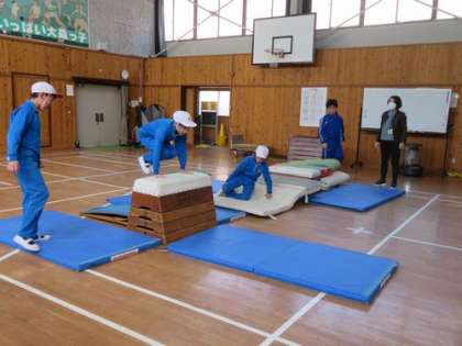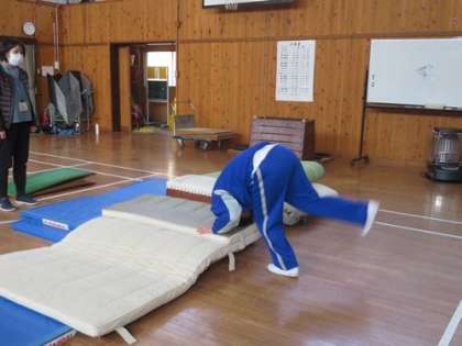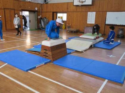 2時間目は体育の授業です。跳び箱に取り組んでいます。一人一人目標をもって、粘り強く練習に取り組んでいます。
