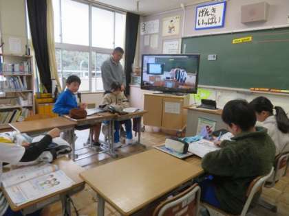 4時間目は外国語の授業です。『Welcome to Japan』というテーマの学習をしています。グループごとに考えた観光案内CMの撮影画像を見て、気をつけたことや気づいたことを個人でまとめました。