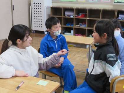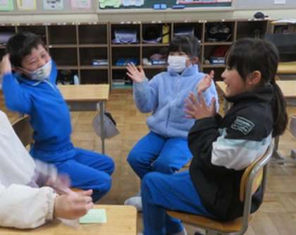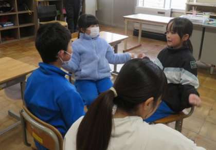 1月28日 2年 公開日 2025/01/28 更新日 2025/01/28 各学年から 3時間目は国語の授業です。『声にだしてみよう〜音の数と高さ〜』を学習しました。要点を確認した後で、「みかん」−「りんご」−「こくご」・・・というように、三音のことばを集めてリレーするゲームをしました。四音でも行いました。楽しみながら学びを深めることができました。
