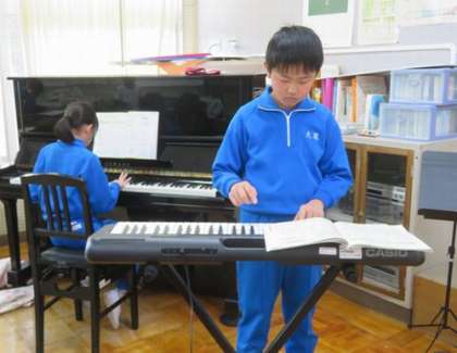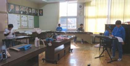1月28日 3・4年 公開日 2025/01/28 更新日 2025/01/28 各学年から 4時間目は音楽の授業です。「いろいろな音のひびきを楽しもう」という内容の学習をしています。今日は『茶色の小びん』の器楽合奏が中心でした。前回まで担当していた楽器は一旦終了し、新しい楽器の分担で練習を始めました。「前の楽器がいい〜」という声も聞かれましたが、振り返りに「もっと他の楽器もやってみたい」と書いた子もいました。