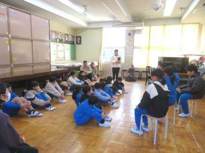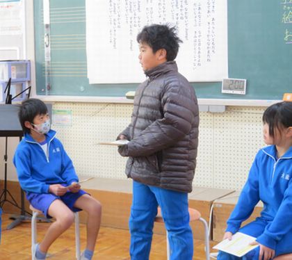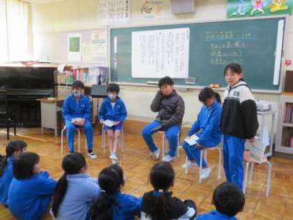 1月29日 さわやかタイム 公開日 2025/01/29 更新日 2025/01/29 学校の特色ある活動 今朝のさわやかタイムは「全校対話集会」です。3・4年生が〈学校のお昼ご飯は…給食がいいてすか?お弁当がいいですか?〉というテーマで対話する様子を全校で参観しました。3・4年の子は、理由の言い方が上手でした。
