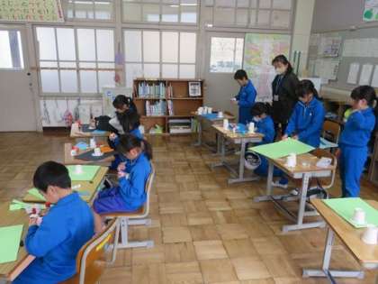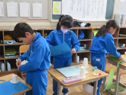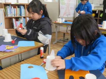 1月29日 1・2年 公開日 2025/01/29 更新日 2025/01/29 各学年から 3・4時間目は図工です。今日から取り組むのは『とびだせ ぴょーん』。紙コップと輪ゴムで飛び出す仕組みをつくり、何を飛び出させるかを考えたり、台紙に描くものを工夫したりしました。次回に続きます。