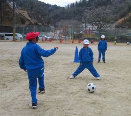 1月30日 1・2年 公開日 2025/01/30 更新日 2025/01/30 各学年から 2時間目は体育の授業です。今日は「ボールけりゲーム」の最初の時間。3人組になり、ねらったところにボールをける練習を行いました。