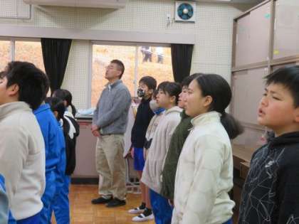 今日のさわやかタイムは、全校で歌の練習です。卒業式で歌う『地球星歌(ちきゅうせいか)〜笑顔のために〜』の音取りを行いました。卒業式で心のこもった歌声を響かせるために、これから毎日、学級で歌い続けていきます。