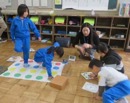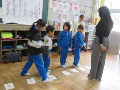 2時間目はALTのエリカ先生と外国語活動を行いました。体のいろいろな部位の英語での言い方に親しみました。2種類のゲームも行い、楽しみながら活動することができました。