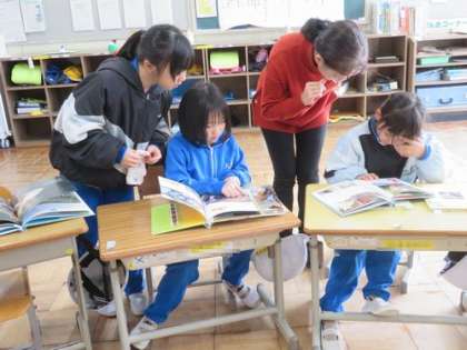 2月4日 1年 公開日 2025/02/04 更新日 2025/02/05 各学年から 3時間目は国語の授業です。動物の本の中から「どうぶつのちえ」について書かれているページを見つけ、ブリントにまとめました。