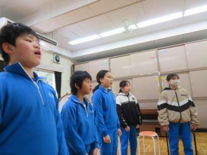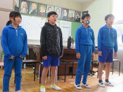 2月4日 3・4・5・6年 公開日 2025/02/04 更新日 2025/02/04 各学年から 4時間目は音楽の授業です。卒業式で歌う『地球星歌〜笑顔のために〜』の練習を2学級合同で行いました。いつもの倍の人数で歌う歌声に、みんなノリノリでした。