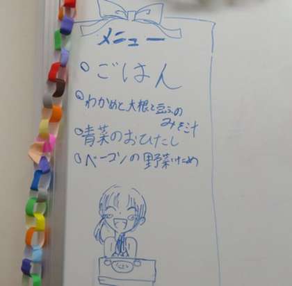 今日のメニューは写真の通りです。おいしくできあがるといいですね。