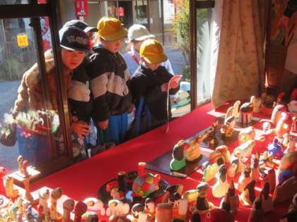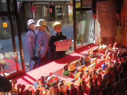 2時間目から4時間目の時間を使って校外学習に出かけました。行き先は足助の町です。「中馬のおひなさん」を見学し、足助交流館で「もち花づくり」を楽しみました。