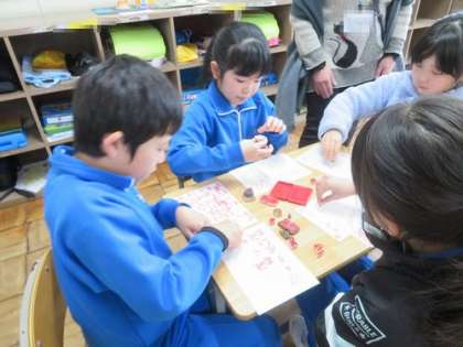 2月19日 1・2年 公開日 2025/02/19 更新日 2025/02/19 各学年から 3時間目は図工の時間です。『うつしたかたちから』を学習しています。この時間のめあては「うつしたらどうなるのかしらべよう!」です。今後、紙版画の制作につなげていきます。