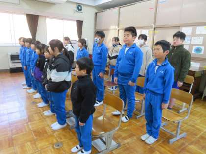 2月25日 さわやかタイム 公開日 2025/02/25 更新日 2025/02/25 特別活動 今週から、さわやかタイムは卒業式の「歌」と「言葉」の練習になります(読み聞かせと元気サミットの日を除いて)。今日は第1回目の「言葉」の練習です。卒業生と在校生に分かれて、卒業式に向けて気持ちを高めていきます。写真は在校生の練習の様子です。