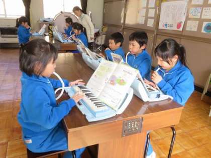 2月25日 1・2年 公開日 2025/02/25 更新日 2025/02/25 各学年から 5時間目は音楽です。はじめに『地球星歌〜笑顔のために〜』を声高らかに歌いました。その後、鍵盤ハーモニカで『こぐまの二月』を演奏しました。