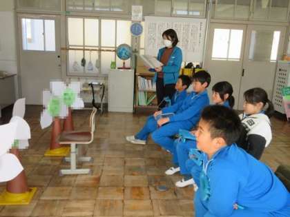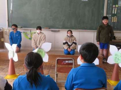 5時間目は3・4・5年生合同で「卒業を祝う会」の準備を進めました。