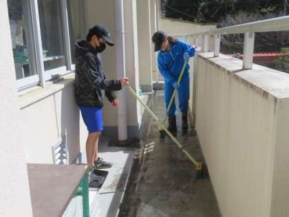 3時間目は愛校活動です。理科室のベランダと、3・4年教室のベランダをきれいにしました。