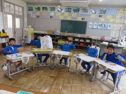 5時間目は図工の時間です。作品バッグに絵を描いて、自分だけのオリジナルバッグをつくりました。