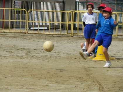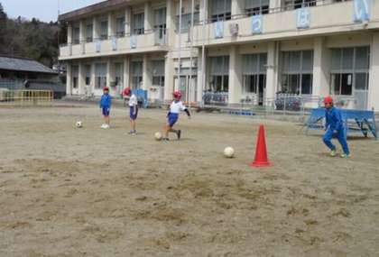 3月14日 1・2年 公開日 2025/03/14 更新日 2025/03/14 各学年から 3時間目は体育の時間です。『ボールけりゲーム』を学習しています。はじめに、ペアでボールをける練習をしました。その後、「キックベース」を行いました。