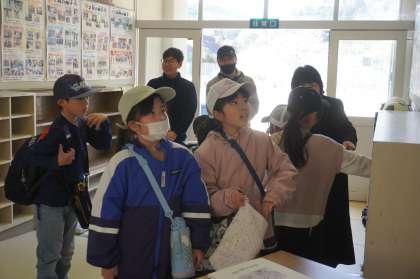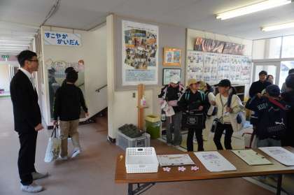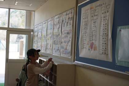 昇降口に入り、名簿を確認し、驚いたり喜んだりしていました。