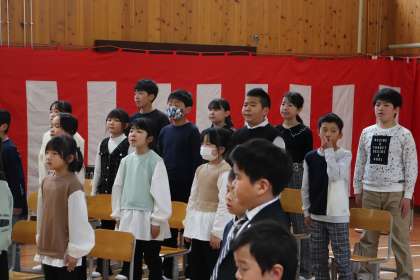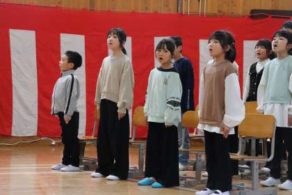 入学式の最後は校歌斉唱です。 大きな声で歌うことができました。