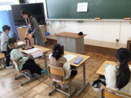 低学年は、1年生が教室で村上先生の話を聞いていたり、持ち物などの確認をしている間、2年生は学習室で永井先生と過ごしていました。