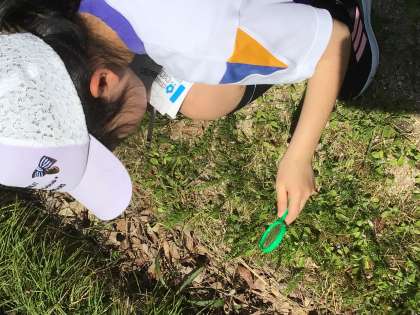 34年生が理科の学習で、春の校庭に咲く花や、虫たちの活動を観察しました。