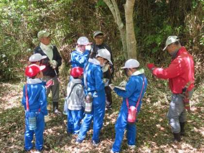 木の幹の太さや木の健康状態を一本ずつ記録します。