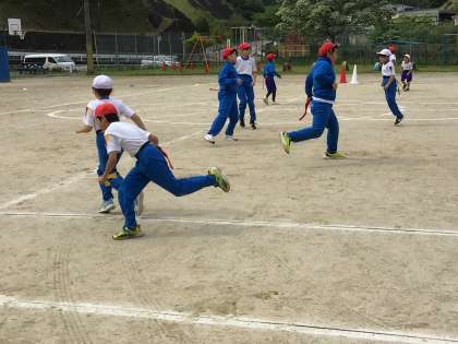 14日の朝の運動会練習は、競遊競技の王様しっぽ取りでした。