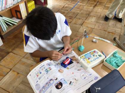 どうつなぐと明かりがつくか、スイッチはどう作ろうかなど、よく考えて作っていました。