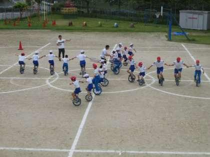 5月19日(月)、2時間目は「一輪車」の練習です。今日は、学級をまたがっての技や全校での技を中心に、そろえることを意識して取り組みました。今週土曜日の本番に向けて、子どもたちの気持ちも高まっています。技の完成度も先週に比べてアップしています。本番が楽しみです。