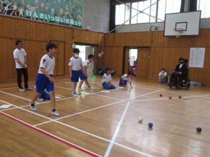 前期2回目のクラブ活動です。「ボッチャ」と「和太鼓」に分かれて活動しました。「ボッチャ」は技術を高めるために技を練習をしました。「和太鼓」は新しい曲に挑戦しています。休みなく全員で太鼓を打ち続けました。