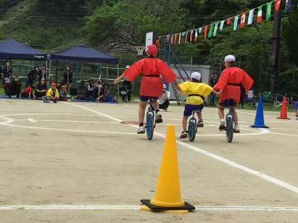 最初の競技は一輪車演技